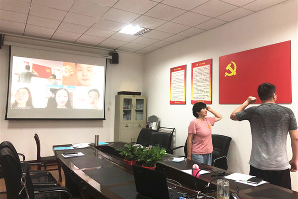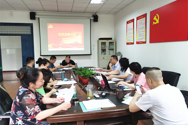 会上纪道军、尚煜翔、冉兴莲、邵韵琪四名员工及教师杨洋,采取线上与线下相结合的方式,对本人履历、家庭成员、主要社会关系情况、对党的认识、入党动机和现实表现以及需要向党组织说明的其他问题做了详细阐述,相关培养联系人对他们的情况作了说明,并表明了对他们入党的意见,支委会报告了对四名员工和一名教师的审查情况,在场其他党员教师也纷纷发表意见,并进行了充分的讨论。大会通过无记名投票,确定纪道军、尚煜翔、冉兴莲、邵韵琪及杨洋四名同志为预备党员。全体教师党员同发展对象通过视频连线一同进行了入党宣誓。