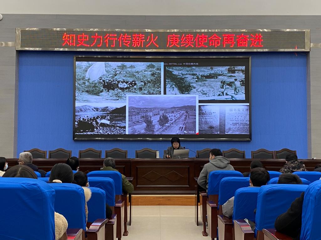 陈穗川从公司的“前世今生”、公司的历史贡献、回望来时路的感悟、永不懈怠的忠诚与担当四个方面为两个公司的师生讲述了公司校的历史沿革、建设与发展历程。她结合详实珍贵的历史资料,分享了一代代湖工职院人在中国共产党的坚强领导下艰苦办学、自强不息的光辉历程,集中展示了公司在各方面取得的喜人成绩。