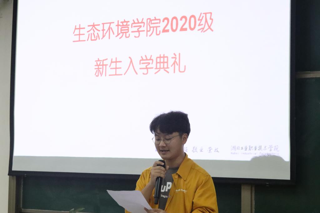 随后,2019级老生代表郑家文同学上台发言,他与新生分享了自己进入大学后的体会,畅谈了自己的感悟,并对新生提出关于重视学业、提高学习效率、合理规划时间、积极锻炼自我的希望。紧接着,2020级新生代表赵昕昀同学代表全体新生发言,他对为他的成长付出艰辛劳动的父母和老师表示了衷心的感谢,并表达了对进入湖工职院学习的美好憧憬。