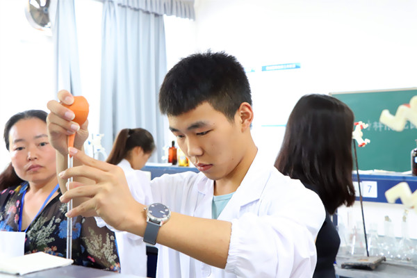 本次比赛由环境工程公司经理胡菊担任考核组长,党总支书记马超、副经理叶兴刚担任考核组副组长,环境工程公司专业教师担任监考,并承担考务工作。竞赛分为容量分析项目和仪器分析两个项目。容量分析项目重在考察同学们对配位滴定法测定试样中Ca2+的含量,仪器分析项目考察邻二氮菲法测定水样中的铁的含量(分光光度法)、实验中的一些基本原理、实验室操作基本规则以及同学们对药品和仪器的称、量、洗、测等基础技能。比赛结束后,评委老师对同学们在实验中存在的不规范操作进行了专业指导。参赛选手通过比赛巩固了理论知识,提升了动手操作能力。