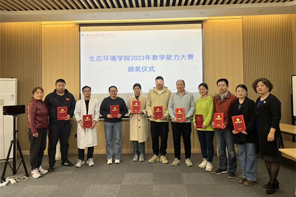 比赛前,各教学团队利用课余时间精心备赛;比赛中,大家各司其职,每一位成员都对自己讲授的内容进行了充分展示,展现了较高的教学能力和团队协作精神。最终通过激烈的角逐和现场评审,由余莹、李小波、雷一鸣组成的参赛团队《无机与分析化学》课程获得一等奖;由杨洋、侯邦飞、刘晓露组成的参赛团队《土壤及固体废物监测》课程获得二等奖;由吴梦霞、李传恺、邵红云组成的参赛团队《仪器分析》课程获得三等奖。