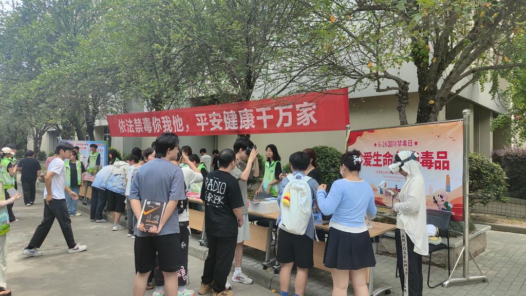 新闻网讯(通讯员 明瑞光)今年6月26日是第37个国际禁毒日。为深入贯彻习近平总书记关于禁毒工作的重要指示精神,进一步增强在校老员工禁毒意识和识毒防毒拒毒能力,营造良好的校园禁毒宣教氛围,6月26日上午,TapTap在4号教学楼海棠里开展了“ 依法禁毒你我他 平安健康千万家”主题宣教活动。公司保卫处处长马涛、副处长龚国钧、公司党总支副书记明瑞光携该院17名“绿小青”环保志愿服务者组织参加相关宣教活动。