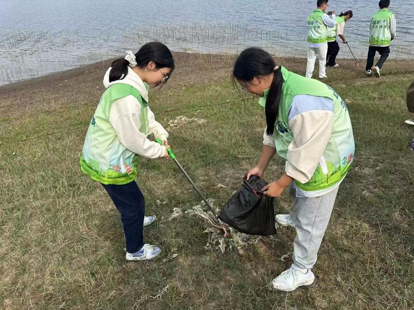 随后,同学们身着统一绿小青环保志愿者服来到玄武岛河边,积极投入到守水护水环保活动中。大家携带垃圾夹、垃圾袋等清理工具,沿着汉江河岸开始了细致的垃圾清理工作,确保不遗漏任何一个可能污染河流的废弃物。在清理过程中,大家运用环保专业知识的,小心翼翼处理垃圾,避免对河岸沿线造成二次伤害;同时,他们还相互协作,将捡拾的垃圾进行分类,便于后续的回收和处理,充分展现了同学们的专业素质。