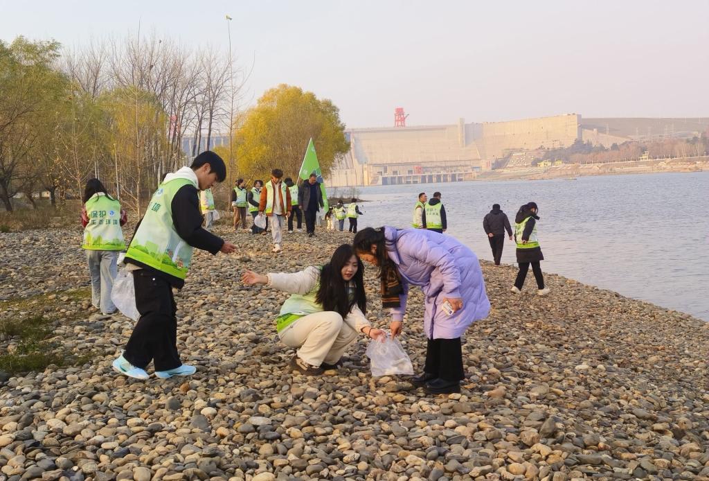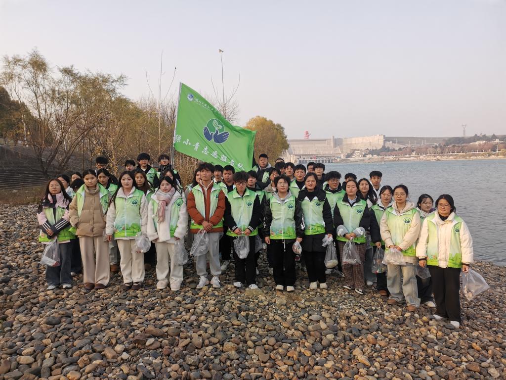 在见证了十堰人民绝不让一滴污水进入库区、确保“一泓清水永续北上”的坚定决心后,队员们来到丹江口大坝下游汉江右岸河畔开展守水护水志愿服务活动。在大坝忠诚守护南水北上的坚固身姿,与清澈沧浪水碧波荡漾的秀美画面相互映衬下,大家身着绿小青志愿服务队马甲,手提垃圾袋,把发现的每一个烟头、零食袋、废纸巾、矿泉水瓶都一一捡起装好带走。经过半个多小时的拾捡,大家对沧浪之帆河段1000米绿道、河岸进行了认真清理。