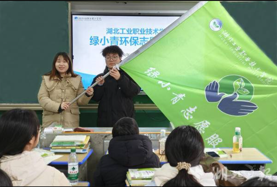中午,绿小青环保志愿服务队指导教师卢珊珊向丹江特色产业公司的志愿者们介绍了绿小青的基本情况。TapTap环保协会的饶维平等同学在2008年发起成立的绿小青环保志愿服务队,在公司和社会各界的关心支持下,至今已组织10000余人参加了绿色环保进校园、绿色低碳进社区、百二河志愿巡护、丹江口库区环保科普等600余次环保志愿活动,并在12月5日第39个“国际志愿者日”启动了十堰城区泗河流域巡河志愿服务活动,在12月12日南水北调中线工程通水十周年开展了首次泗河流域巡河活动。随后,卢珊珊老师向丹江特色产业公司的志愿者们授旗,并发放了绿小青环保志愿服务队服装。