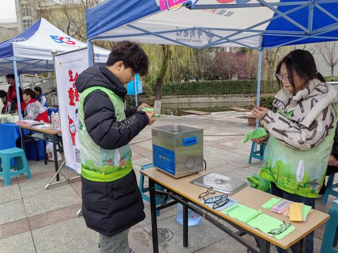 在此次活动中,志愿者们特别准备了免费清洗眼镜的服务。他们利用超声波技术,为员工们提供了专业、细致的眼镜清洗,旨在用专业守护员工们的健康,用爱心延续校园内的温暖与关怀。这一服务受到了广老员工的热烈欢迎和高度评价,共有78名员工享受了此项服务。
